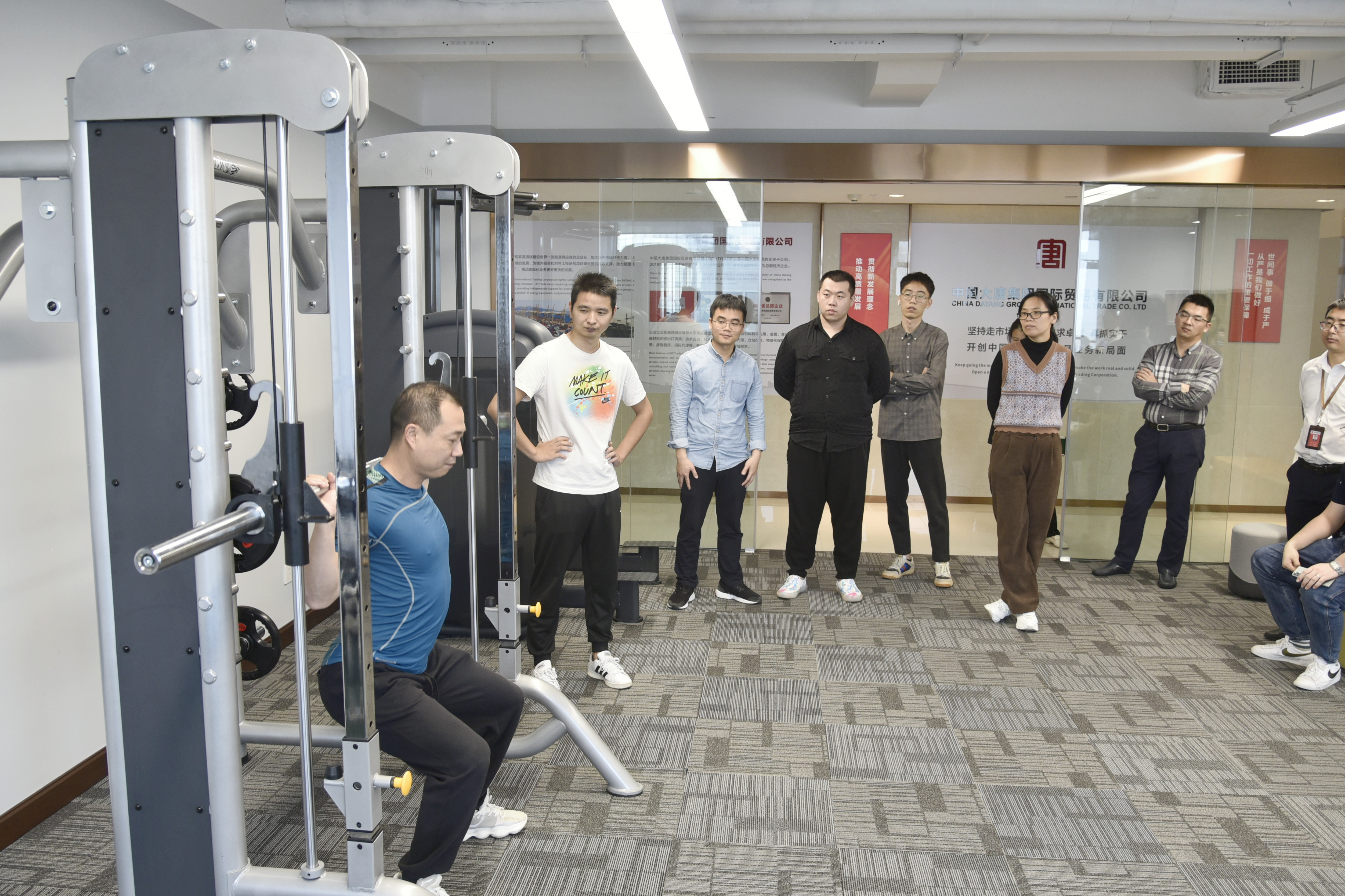 該公司健身活動室充分利用現(xiàn)有辦公樓的場地資源進行規(guī)劃和設計,購置了跑步機、橢圓機、健身車、劃船機等十多類常用室內健身器材,按照有氧區(qū)、力量區(qū)合理布置。同時,該公司聘請專業(yè)老師每周一次為職工進行健身現(xiàn)場實戰(zhàn)培訓和理論講解,為豐富職工業(yè)余生活創(chuàng)造了一個良好的環(huán)境,讓大家業(yè)余時間有了新“去處”。