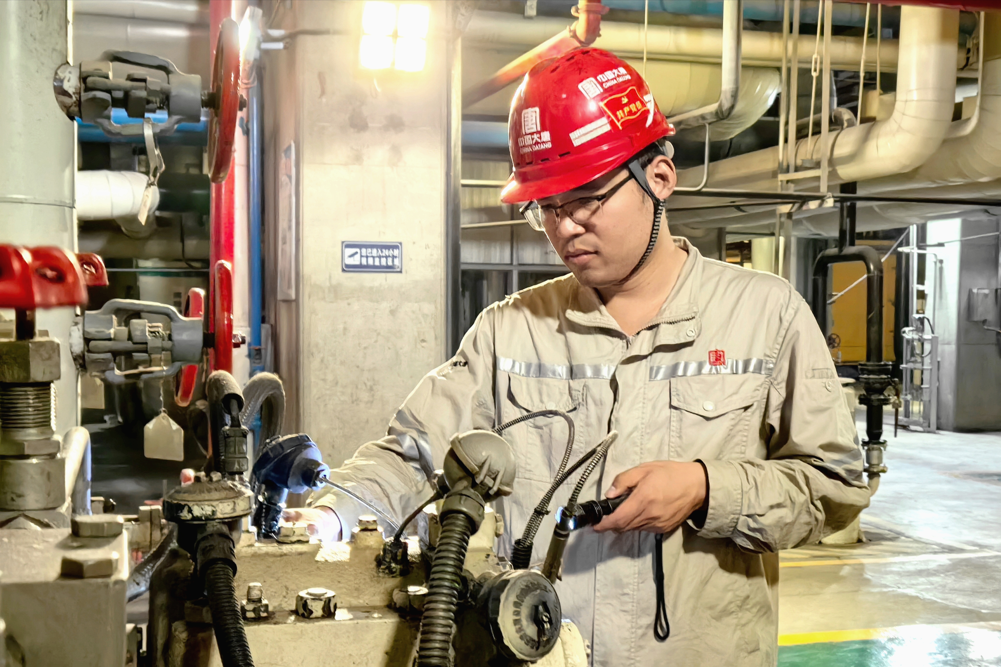 這次深夜應(yīng)急處置,不過是他們守護“生命線”的其中一幕。在如同“毛細血管”般遍布廠區(qū)的生活水管網(wǎng)中,任何細微的數(shù)據(jù)波動都需要關(guān)注。秦建亮帶領(lǐng)班組,手持聽漏棒,貼著管道一寸一寸仔細巡檢,不放過任何一絲異常的流水聲。“今天務(wù)必完成管網(wǎng)漏點治理,保障大家正常用水?!彼麕е嘟M輪班作業(yè),爭分奪秒地處置每一處識別出的潛在隱患。