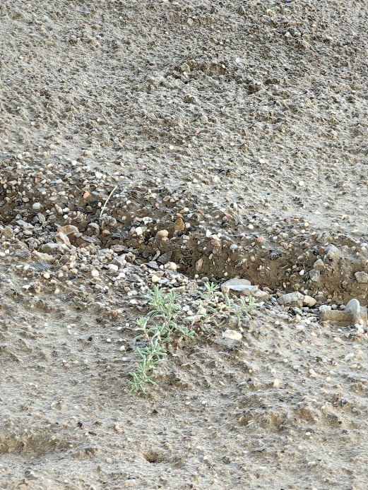 光伏板遮擋的陰影區(qū)域下長出的一株草 中國日報記者 張微 攝