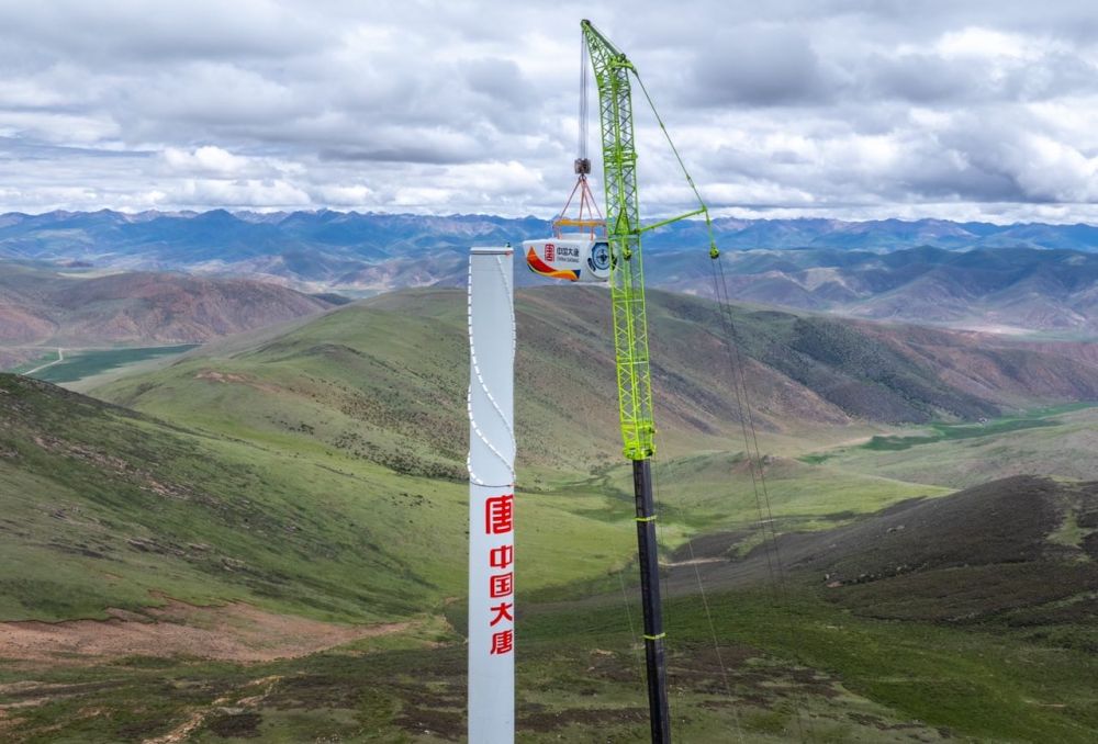 7月10日,在藏東南高原,隨著現(xiàn)場指揮員一聲令下,1800噸汽車吊將重達(dá)117噸的風(fēng)機(jī)葉輪組件緩緩吊至110米高空與機(jī)艙精準(zhǔn)對接,標(biāo)志著世界在建最高海拔風(fēng)電場——大唐西藏能源開發(fā)有限公司八宿100兆瓦保障性并網(wǎng)風(fēng)電項(xiàng)目首臺風(fēng)機(jī)吊裝作業(yè)順利完成,實(shí)現(xiàn)了中國大唐在藏風(fēng)電工程建設(shè)從無到有的跨越式發(fā)展,也為雪域高原增添了又一綠色能源新地標(biāo)。