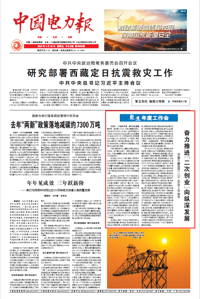 本報訊(記者 李東海 通訊員 伍鯤鵬 陳文學(xué) 劉占虎)1月8日,中國大唐集團(tuán)有限公司在京召開 2025年工作會議,全面貫徹落實中央經(jīng)濟(jì)工作會議和中央企業(yè)負(fù)責(zé)人會議部署要求,總結(jié)2024年工作,分析面臨形勢,安排部署2025年重點工作,動員系統(tǒng)廣大干部職工勇?lián)姑?、真抓實干,踔厲奮發(fā)勇向前,推進(jìn)“二次創(chuàng)業(yè)”向縱深發(fā)展,以實績實效為強(qiáng)國建設(shè)、民族復(fù)興作出新的更大貢獻(xiàn)。