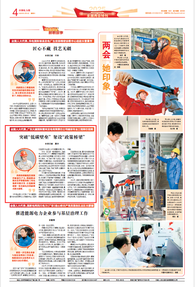 今年是全國(guó)人大代表、廣東大唐國(guó)際雷州發(fā)電有限責(zé)任公司繼保專業(yè)工程師任佳炯作為全國(guó)人大代表履職的第三年。