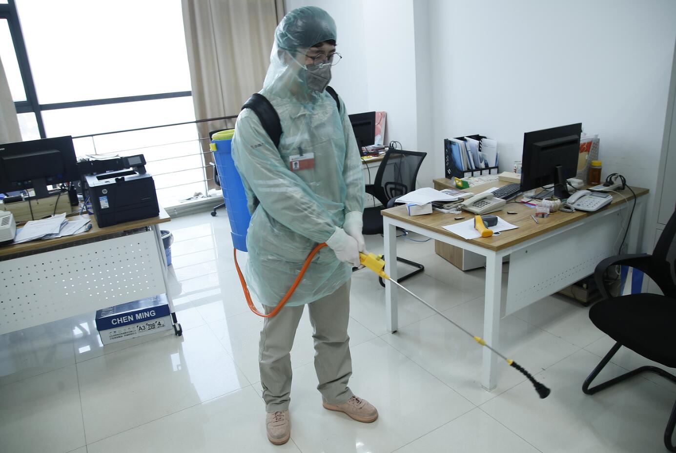 辦公室防疫消殺(周航/攝)