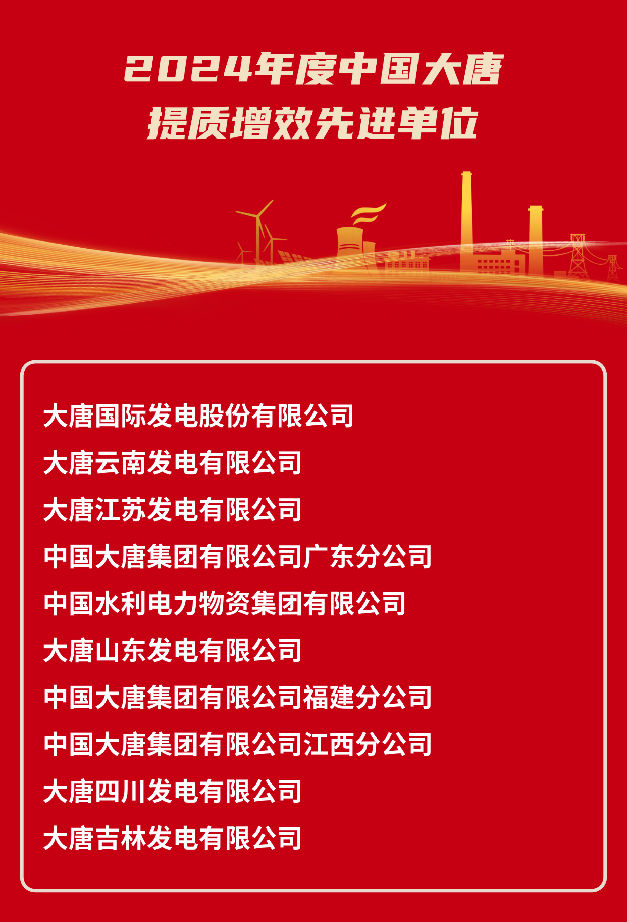 2024年度中國大唐集團有限公司提質增效先進單位