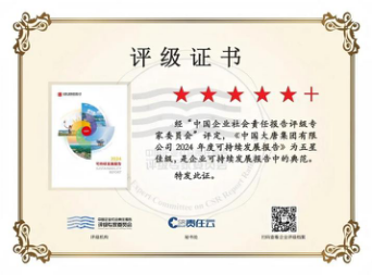 China Datang's?2024 Sustainable Development Report?earned a five-star-plus?rating, which is the highest level in the country's rating system for CSR reporting.